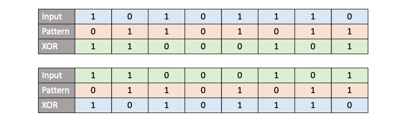 The bitwise XOR has a incredible feature ‘involution‘ which means the function is an inverse of itself. So if we have an input bit array, and we apply a XOR operation to it with a key, we get an output. Now if we take the output and XOR it with the original key again, we get back the input. This bidirectional nature makes it convenient for cipher algorithms.